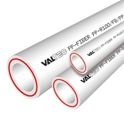 Труба из полипропилена PP-R 100, армированная стекловолокном, для систем водоснабжения и отопления. Максимально допустимое рабочее давление при температуре теплоносителя 90 °С – 6 бар, при транспортировке холодной воды – 20 бар. Ассортимент VALTEC включает в себя трубы PP-FIBER с наружным диаметром от 20 до 63 мм. Технология монтажа трубопроводов – контактная сварка.